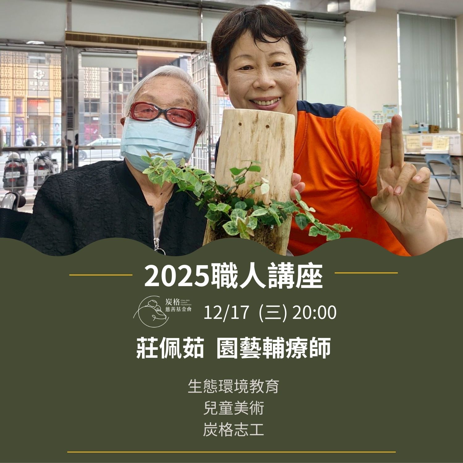 12月17日晚間,炭格基金會的線上職人講座充滿了意想不到的溫暖與笑聲。我們邀請到資深園藝輔療師「綠豆老師」,帶領孩子們認識植物的療癒力量。