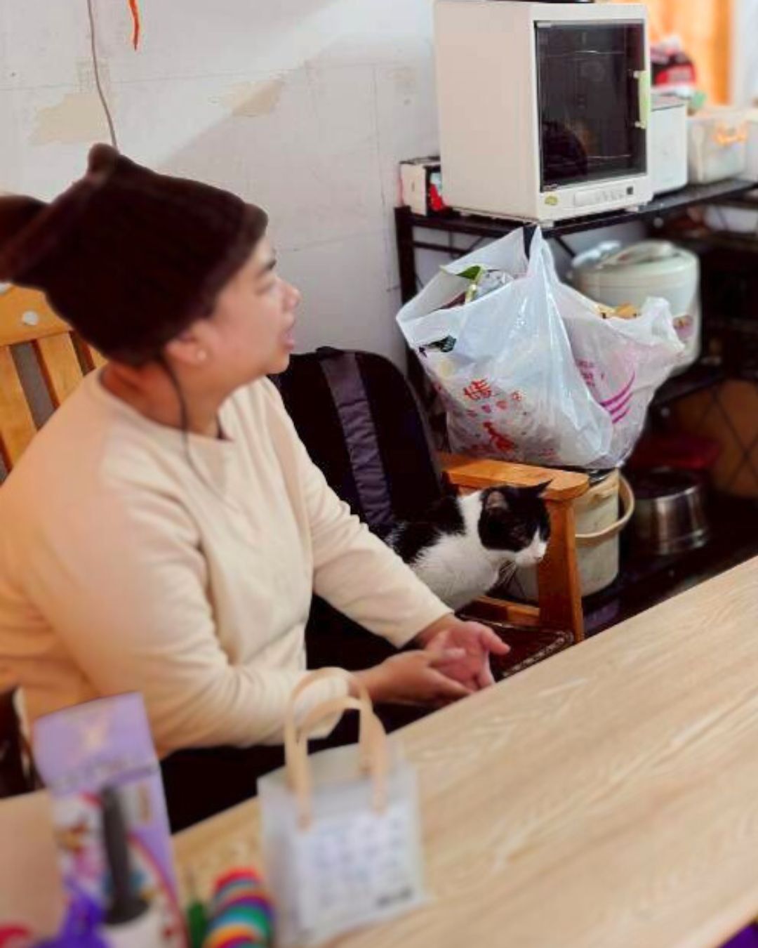 這句話像是一把鑰匙。這個家其實是一個隱藏在社區裡的流浪貓中途小窩。對媽媽而言,這些安靜、獨立,給予陪伴卻不索求回應的貓,是她心靈重要的藥引。牠們接納她的沉默,成了她與世界之間最溫柔的防線。