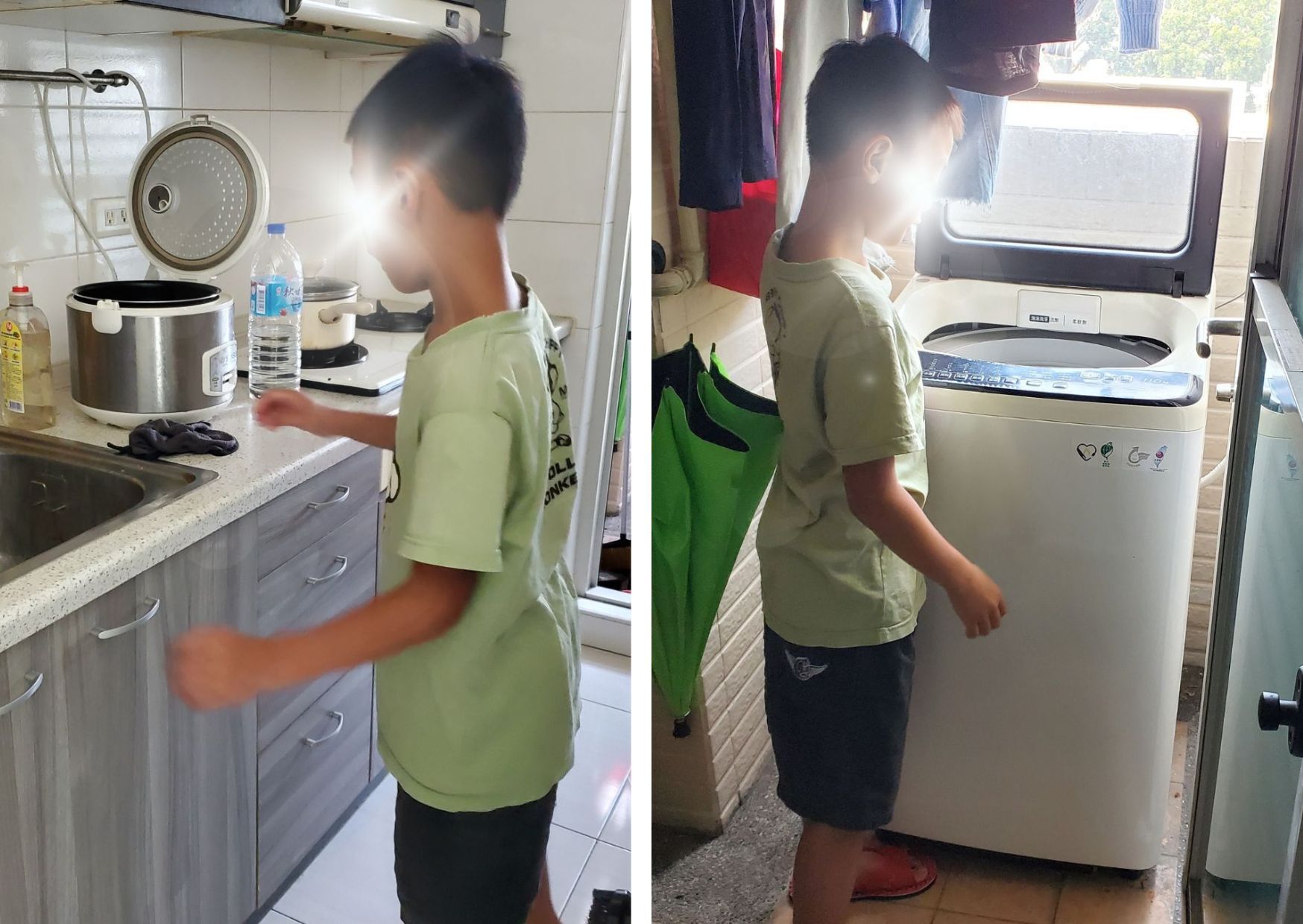 然而,搬到城市後,環境的劇烈切換反映在他的行為上。那個曾在大自然裡天馬行空、過去會因睡過頭而遲到的孩子,讓年邁阿公追不上的好動孩子,如今展現出驚人的適應力:每天清晨 6 點自動起床,不需催促,整理好自己,靜靜看電視等待大人醒來。在姑姑的教育下,小祖會協助煮白飯、洗衣服等家務,在這個忙碌維生的家庭中分擔一份責任。這份早熟的「成長」,或許正是孩子為了在異地建立安全感,收起野性,努力跟上城市步調的證明。