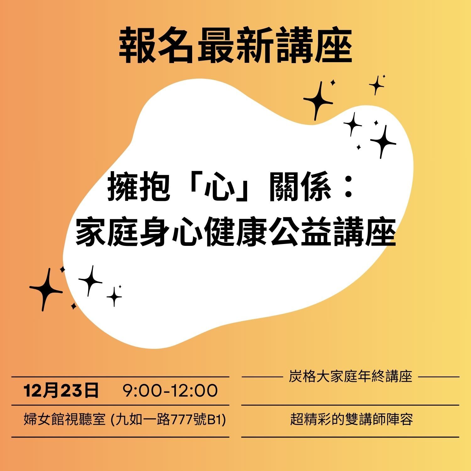 面對環境變動與教養挑戰,照顧者往往承受巨大壓力。炭格基金會將於 12/23 (二) 舉辦免費公益講座,邀請專家分享如何理解孩子氣質與照顧者身心調適。