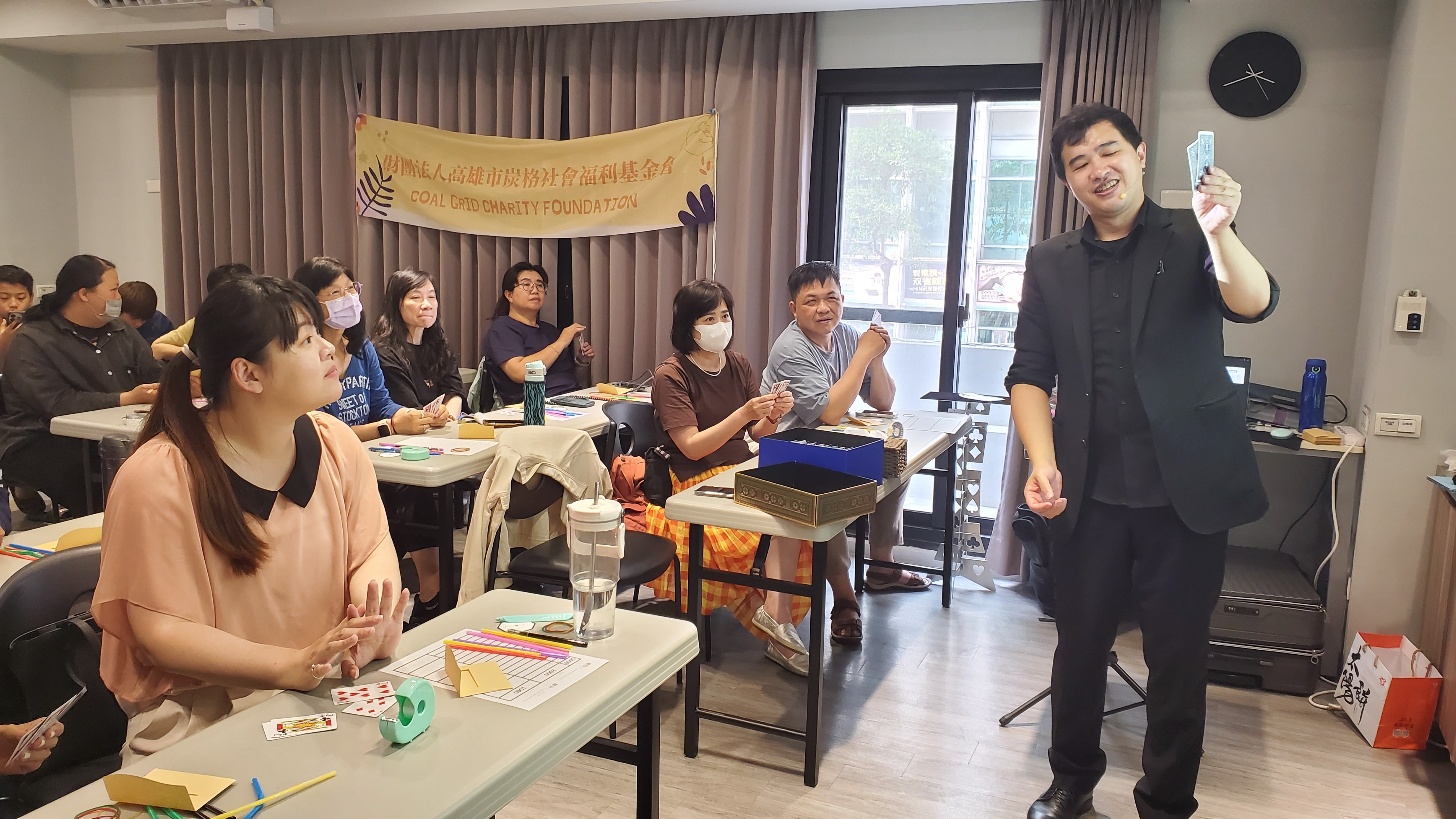 3 月 28 日下午,炭格基金會舉辦的「魔幻處方箋」公益講座,在熱烈的驚呼聲中拉開序幕。擔任講師的李貫廷醫師(成大醫院、部南醫院家醫科主治醫師),不僅擁有深厚的醫學背景,更是獲獎無數的魔術師 。活動一開始,李醫師以一套經典的白鴿魔術瞬間震懾全場,從原本空無一物的書本變出雪白鴿子,讓在座的志工與據點工作者紛紛感嘆魔術的不可思議,也體會到魔術作為「打破冰山」工具的強大吸引力。