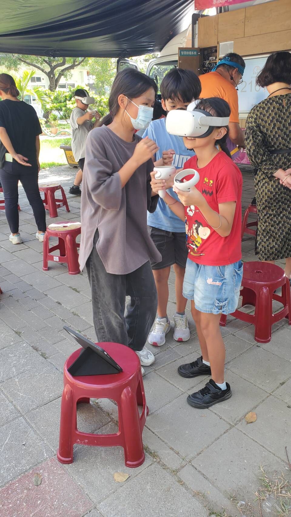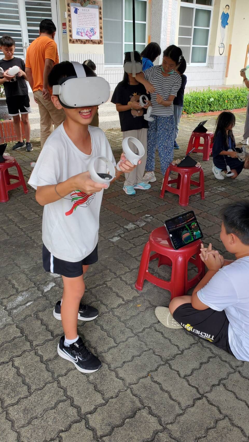 沉浸式藝術創作: 學生們戴上 VR 頭戴裝置,使用虛擬畫筆進行 3D 藝術創作。這不僅激發了他們的空間想像力與美感,也為在地文化特色(如客語故事或傀儡戲角色)提供了全新的數位展現平台。